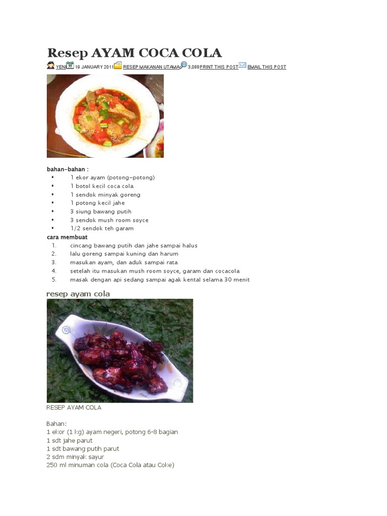 Update Resep Makanan Resep Ayam Coca Cola